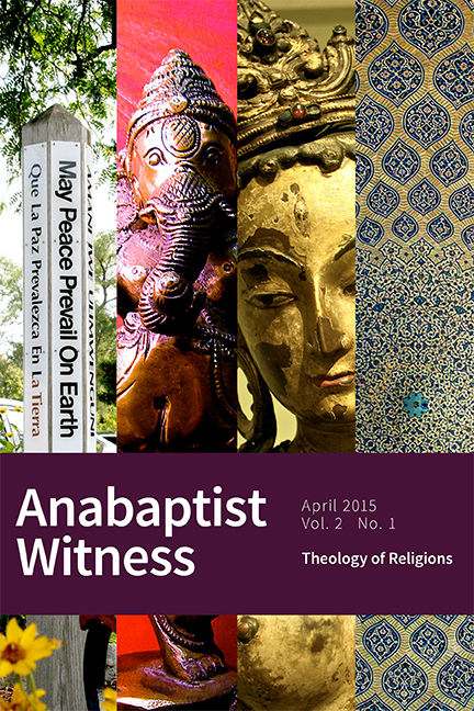 Consideration of the church's missional constitution and context lead to the claim that interaction with religious others is a necessary element of Anabaptist witness. But what does this interaction look like? What should it look like? What resources do Christian theology and missiology offer as guides to understanding and engaging other religions? The essays in this issue of Anabaptist Witness offer various responses to these questions, questions that make up the field of the "theology of religions."