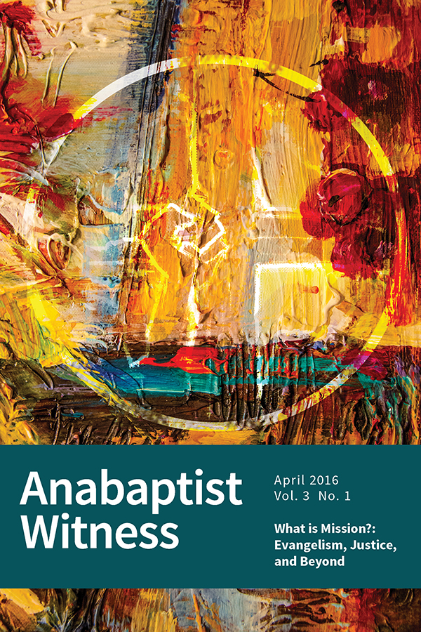 What is Christian mission? Is it verbally sharing the gospel in order to convert non-believers? Is it social justice ministry aimed at realizing God's shalom on earth as it is in heaven? Is it some mixture of both, or something else entirely? Contributors to the current issue of Anabaptist Witness engage these crucial questions through theological, biblical, and personal reflections on ministry in a wide variety of settings. While most contributors agree that mission involves all of life, disagreements are evident over the specific shape of mission practice. Still, there seems to be an emerging consensus that mission involves vulnerable encounters with others. We hope that this issue will help you answer the question, What is mission?