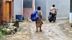 Many neighbors make their livelihoods scavenging for recycling. They often pull carts or carry sacks to put recycling into. Photo by Yosiah (author’s husband).