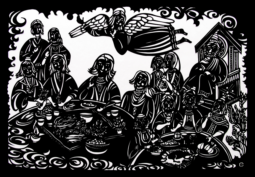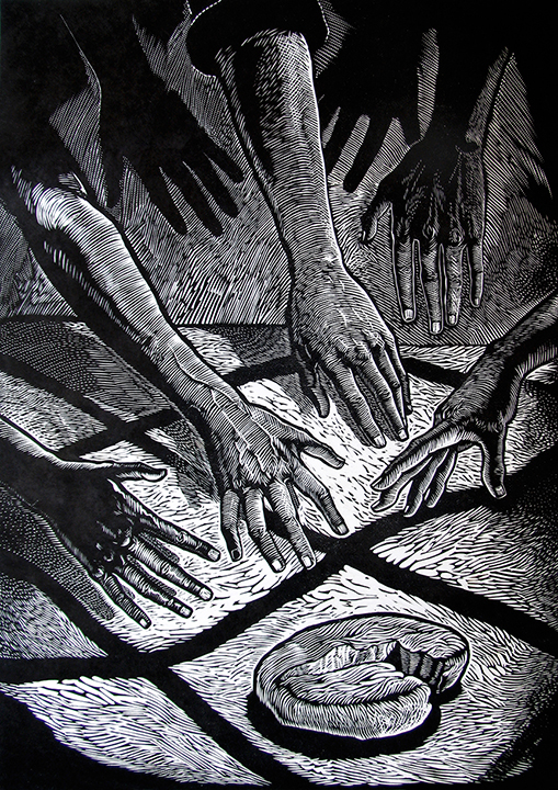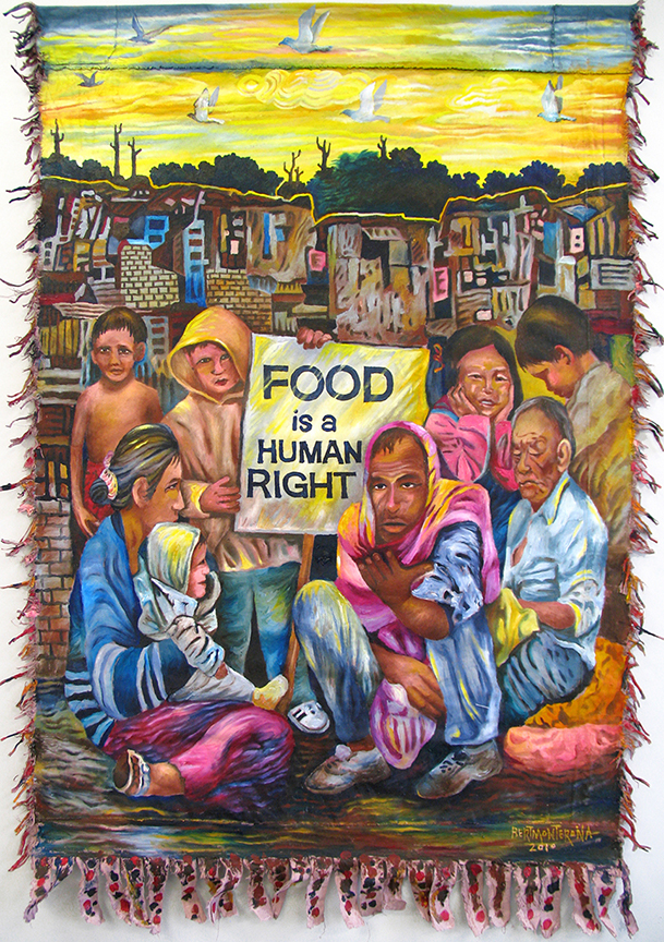 The art presented in this exhibit challenges viewers to discover, contemplate, and explore food-related issues from a myriad of cultural, faith, political, and economic perspectives, sometimes in literal terms, sometimes more abstractly, some holding close to the quotes, some unveiled with broader brush strokes, but all created with integrity using the universal language of art.