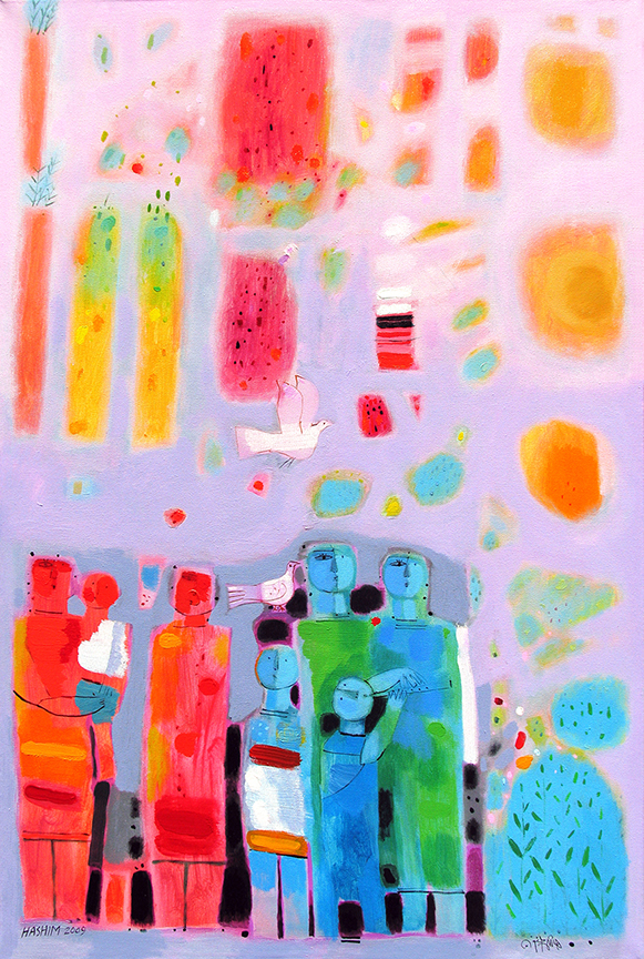 In this painting there is a family celebrating the harvest. In addition the coloured spaces, figures and other geometrical shapes represent a city. The happiness of the children makes them fly and play.